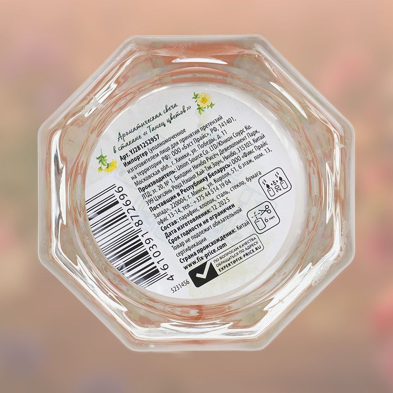 Ароматическая свеча в стакане "Танец цветов" создаст атмосферу уюта и наполнит пространство приятным ароматом. Элегантный стеклянный стакан гармонично впишется в интерьер, а разнообразие композиций позволит выбрать настроение по вкусу. Соблюдайте правила пожарной безопасности! Размер: 8×7 см. Состав: парафин, хлопок, сталь, стекло, бумага. Товар представлен в ассортименте.