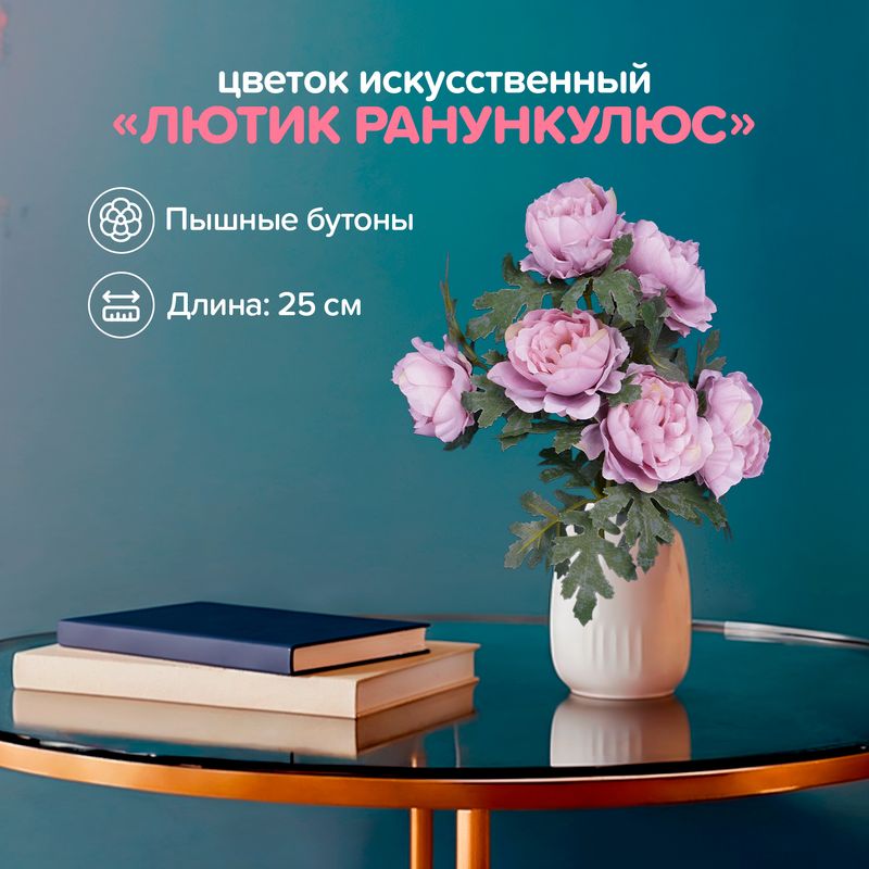 Цветок искусственный выполнен в виде веточки с пышными бутонами. В любое время года летнее настроение обеспечено! Длина: 35 см. Состав: полиэстер, сталь, полиэтилен. Товар представлен в ассортименте.