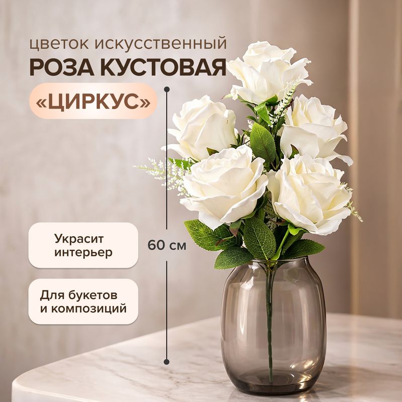 Цветок искусственный "Роза кустовая Циркус", в ассортименте