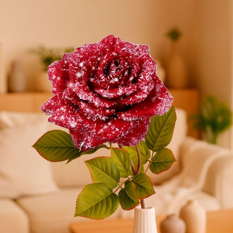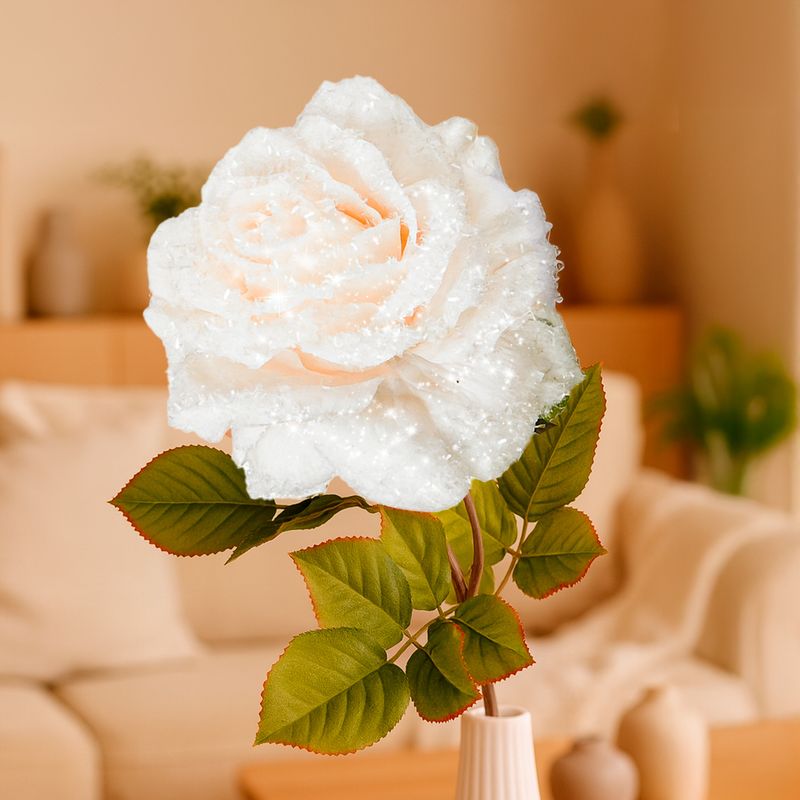 Цветок искусственный "Роза Лучиано" — это эффектная декоративная роза с лепестками, покрытыми искристым "инеем", благодаря которому композиции будут выглядеть по-зимнему нарядно. Подойдёт для оформления букетов, декора интерьера, фотозон и праздничных композиций. Товар представлен в ассортименте.