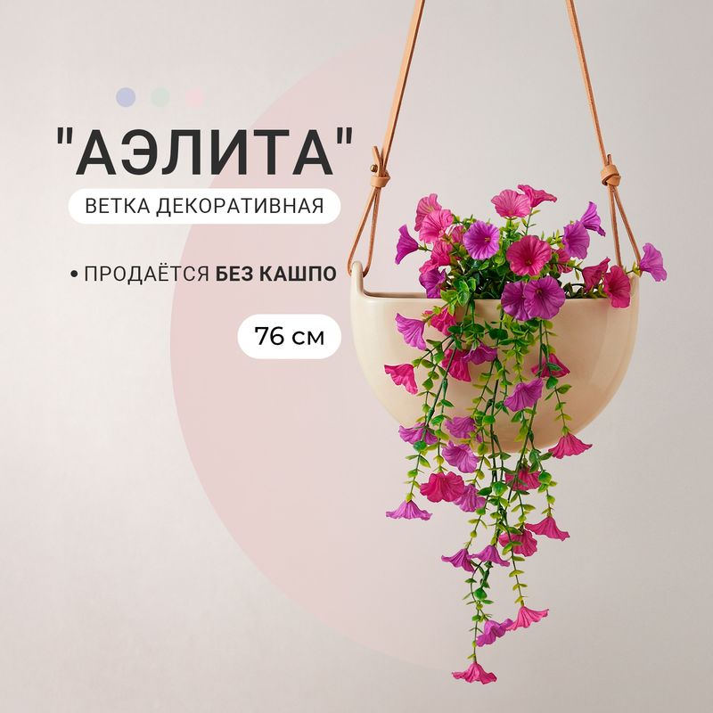 Ветка декоративная "Аэлита" поможет добавить интерьеру яркий природный акцент. Изящные цветы и аккуратная форма делают её подходящей для декоративных композиций, ваз и оформления пространства. Отлично смотрится как самостоятельный элемент или в составе букета. Длина: 76 см. Состав: полиэстер, полиэтилен, сталь. Товар представлен в ассортименте.