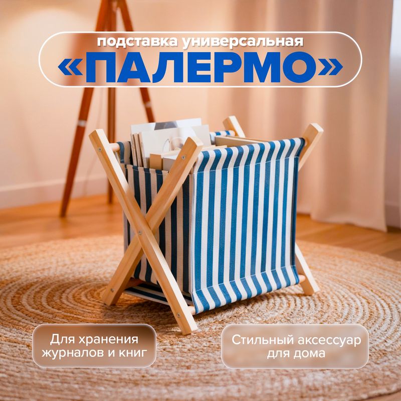 Подставка универсальная – это стильный и многофункциональный аксессуар для дома. Пригодится для хранения журналов, книг. Станет милым подарком на новоселье. Состав: сосна, павловния, полиэстер, сталь. Товар представлен в ассортименте.