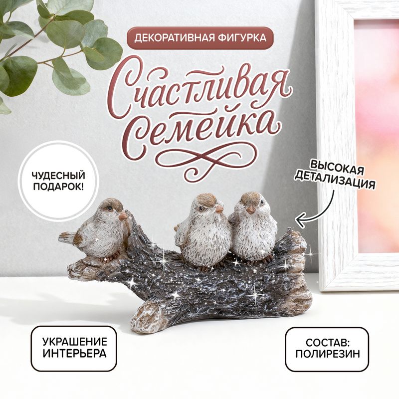 Декоративная фигурка "Счастливая семейка" – это милые птички на ветке, которые станут украшением Вашего интерьера! Отличный вариант подарка. Состав: полирезин. Товар представлен в ассортименте.