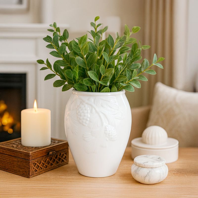 Ваза "Лантау" декорирована объёмным растительным узором. Чудесный выбор для украшения дома! Высота: 19 см. Состав: керамика.