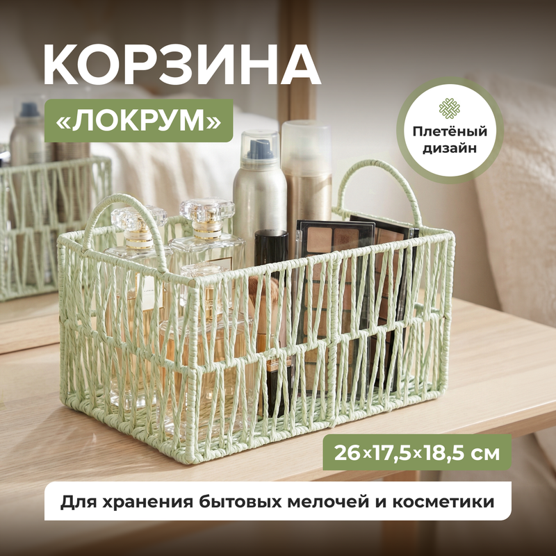 Корзина "Локрум" поможет аккуратно организовать хранение в шкафу, на полке или рабочем столе. Плетёный дизайн добавит интерьеру лёгкости и уюта. Подойдёт для хранения бытовых мелочей и косметики. Размер: 26х17,5х18,5 см. Состав: бумага, сталь. Товар представлен в ассортименте.
