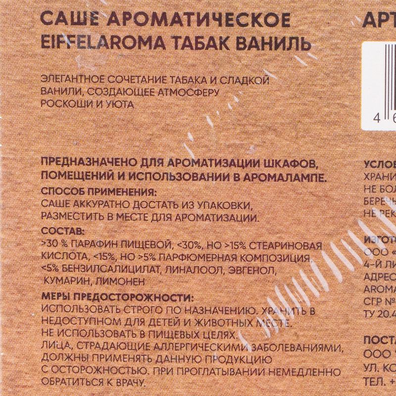 Аромасаше отлично подходят для использования в ящиках с постельным бельём и одеждой, шкафах и салоне автомобиля. В упаковке 9 аромасаше и мешочек для хранения. Перед использованием ознакомьтесь с мерами предосторожности на упаковке. Товар представлен в ассортименте.