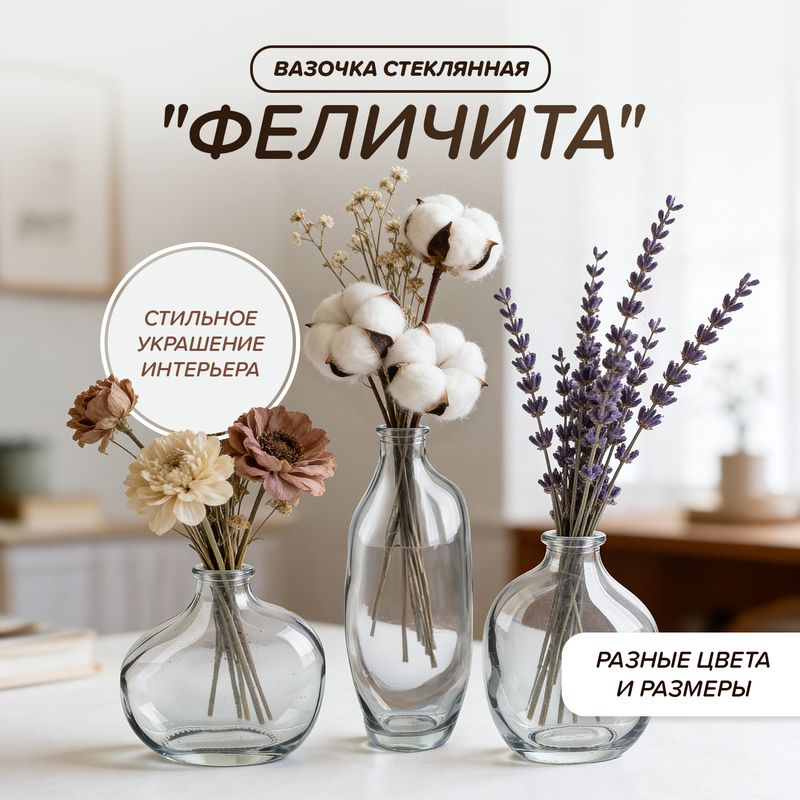 Вазочка стеклянная "Феличита" – изящный предмет декора для Вашего дома! Прекрасно дополнит любой интерьер. В ассортименте представлены вазы различных форм и цветов.