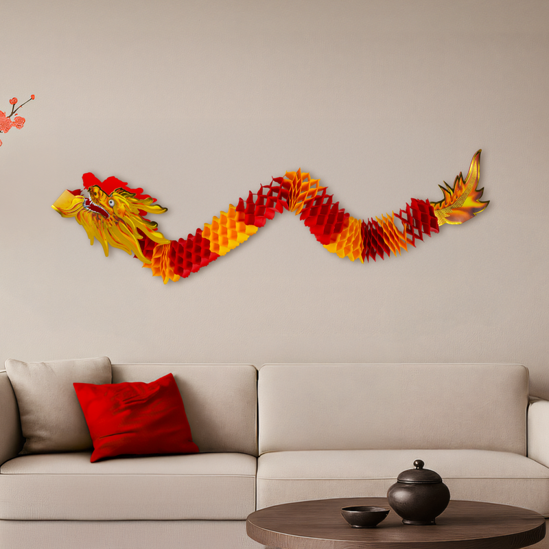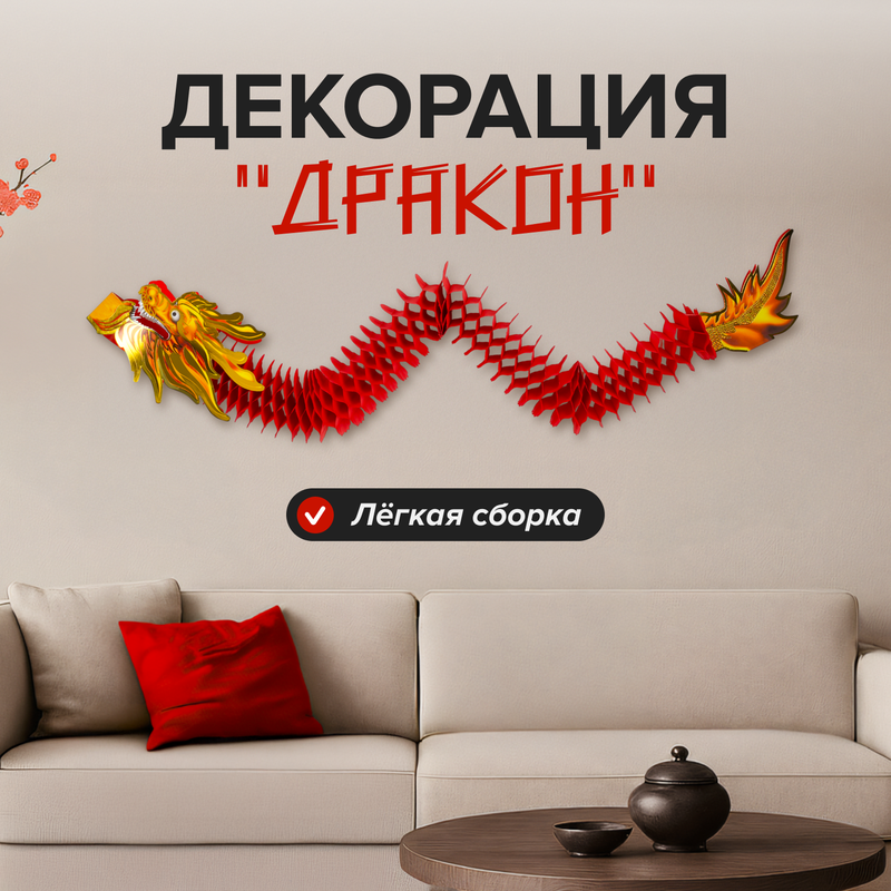 Декорация "Дракон" — эффектное объёмное бумажное украшение, которое легко крепится на стену и сразу создаёт яркий акцент в пространстве. Гибкая конструкция позволяет придать дракону выразительную форму, а насыщенные цвета и детали делают его заметным элементом декора. Состав: бумага, полиэстер, полипропилен, нейлон. Товар представлен в ассортименте. Прикоснитесь к эстетике Востока с коллекцией "Декор в азиатских традициях"!