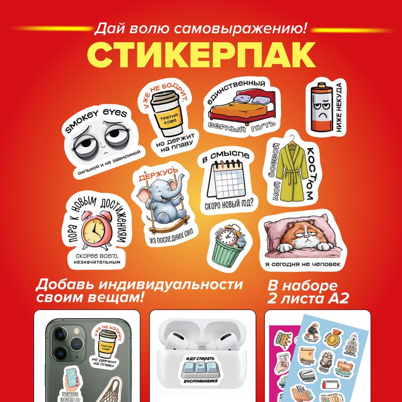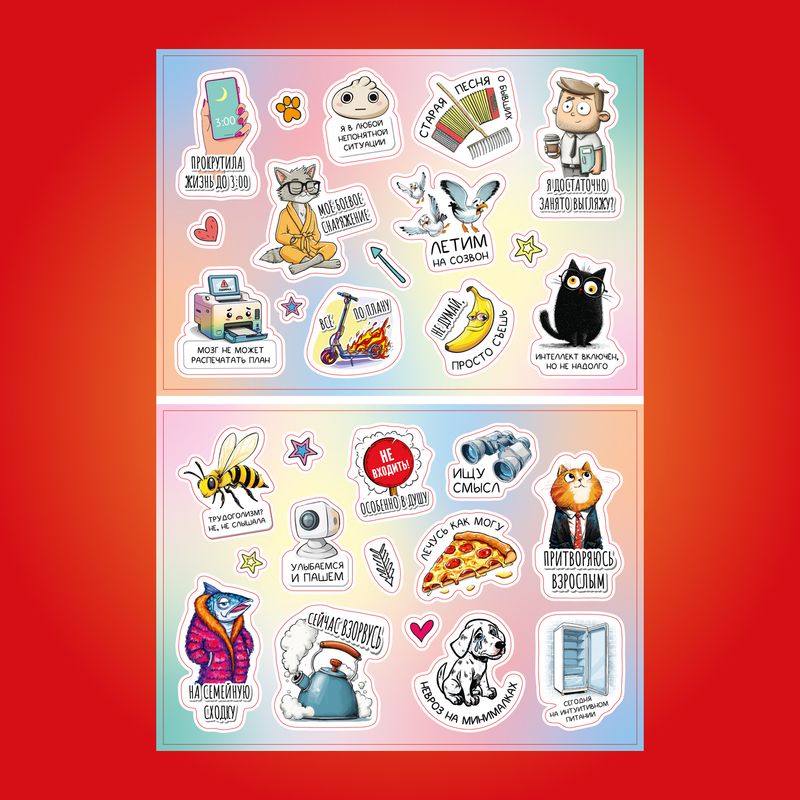 Набор стикеров, Prank Bank — это яркие наклейки с забавными иллюстрациями и фразами, которыми легко подчеркнуть свой характер и чувство юмора. Подойдут для оформления тетрадей, гаджетов, открыток и подарков. В наборе 2 листа формата А5. Товар представлен в ассортименте.
