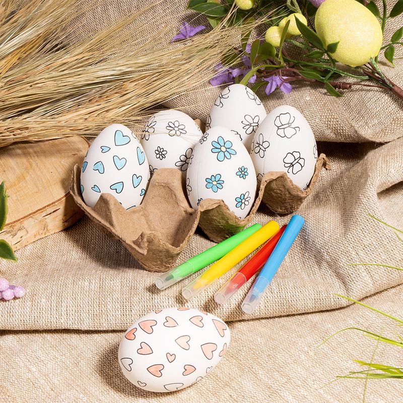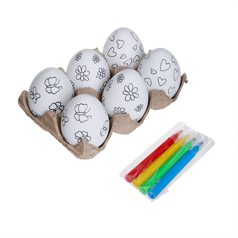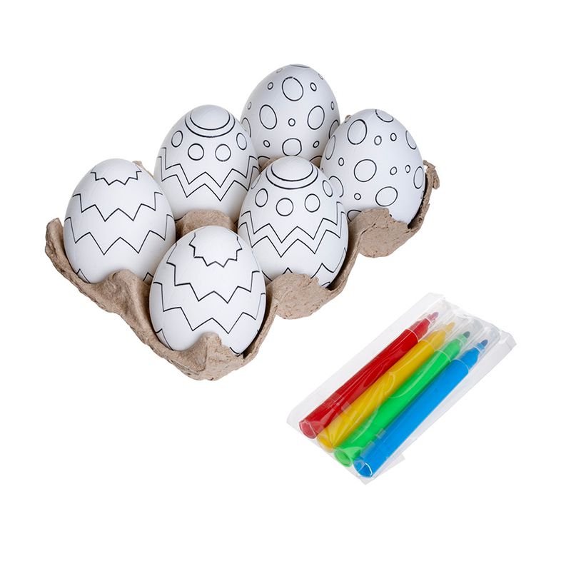 Набор для творчества пасхальный детский, поможет ребёнку проявить свою креативность! В комплекте 6 яиц с нанесённым контуром для раскрашивания и 4 разноцветных фломастера. Для детей от 3 лет. Состав: полистирол, полипропилен, вода, гликоль, полиэстер. Товар представлен в ассортименте.