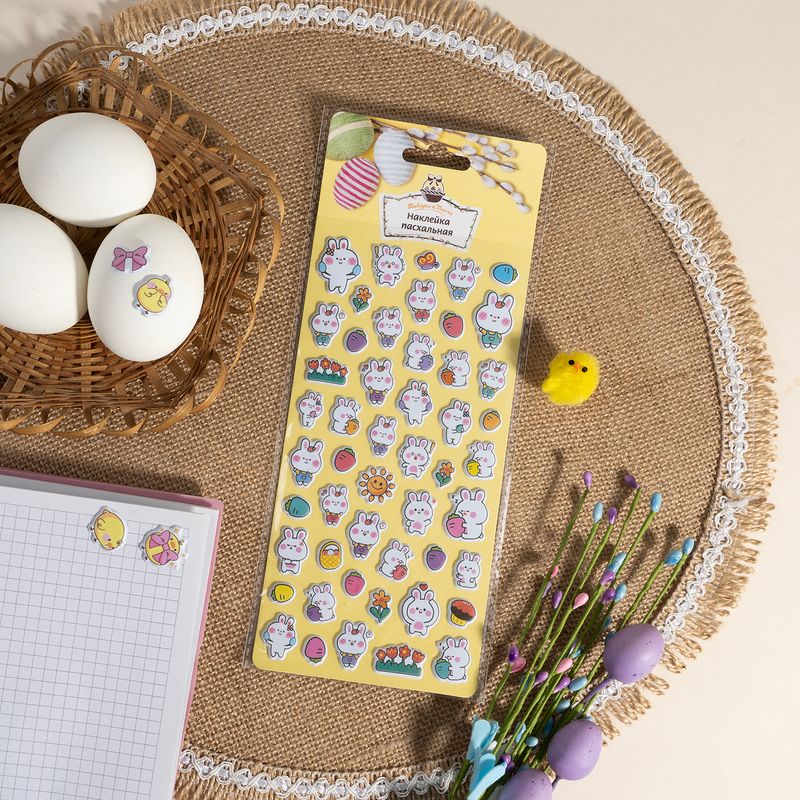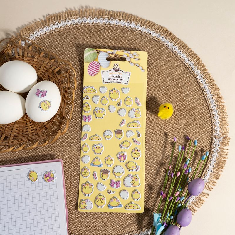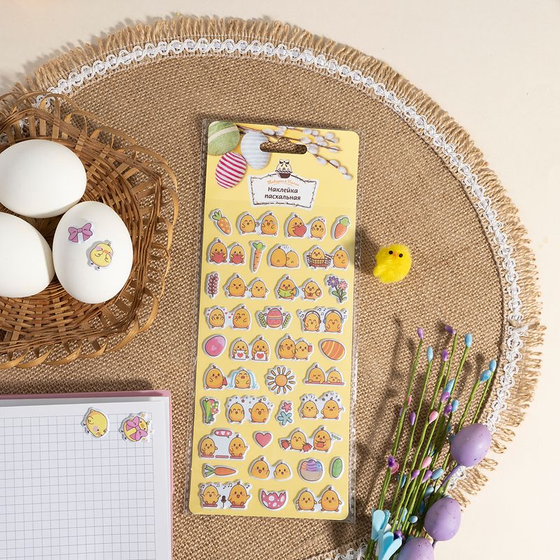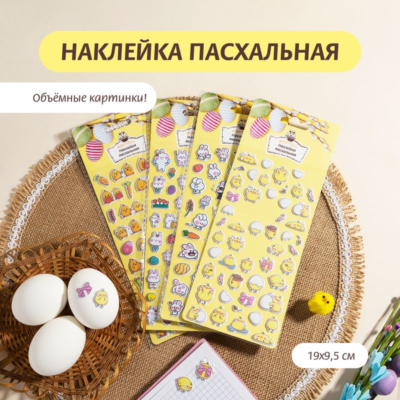 Наклейка пасхальная, Товары к Пасхе, с объёмными картинками станет оригинальным украшением для яиц, открыток или подарков. Рисунок нанесён печатным способом. Размер: 19х9,5 см. Состав: ПВХ, полиуретан, ПЭТ. Товар представлен в ассортименте.