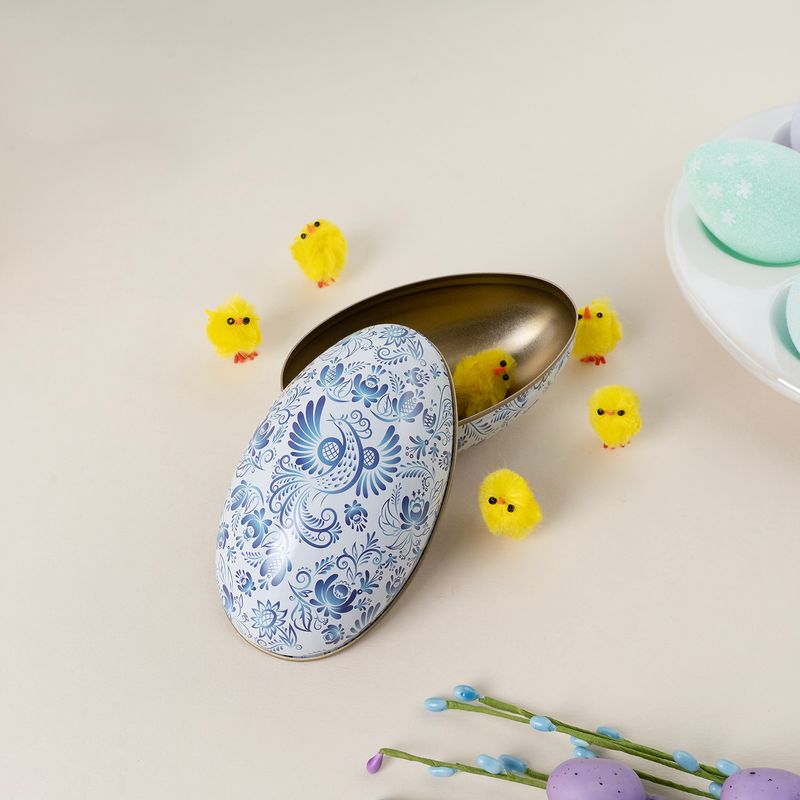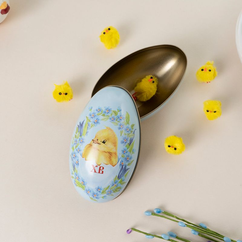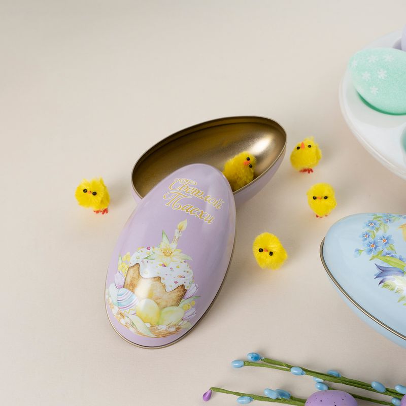 Коробочка подарочная «Яйцо», Товары к Пасхе – оригинальное решение для упаковки пасхальных подарочков, угощений или сюрпризов. Размер: 11,3х6,5х7 см. Состав: жесть. Товар представлен в ассортименте.