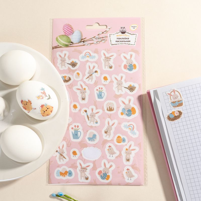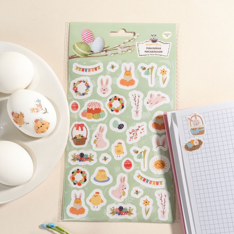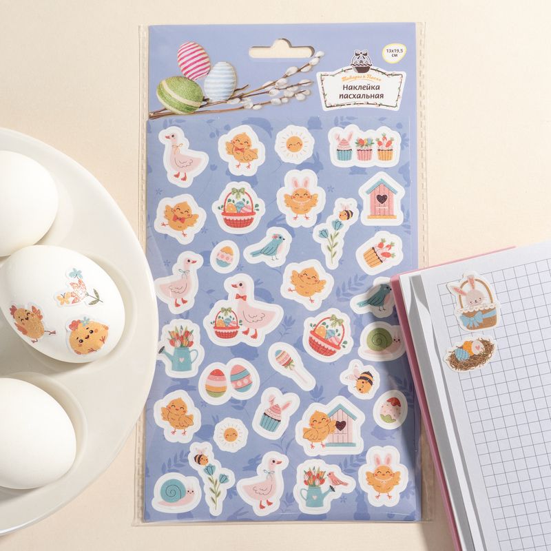 Наклейка пасхальная, Товары к Пасхе, предназначена для быстрого и лёгкого украшения яиц, открыток и подарочной упаковки. Яркий печатный рисунок создаст праздничное настроение. Размер листа: 13х19,5 см. Состав: бумага, ПЭТ. Товар представлен в ассортименте.