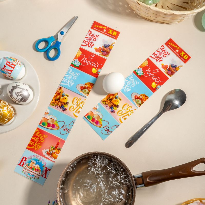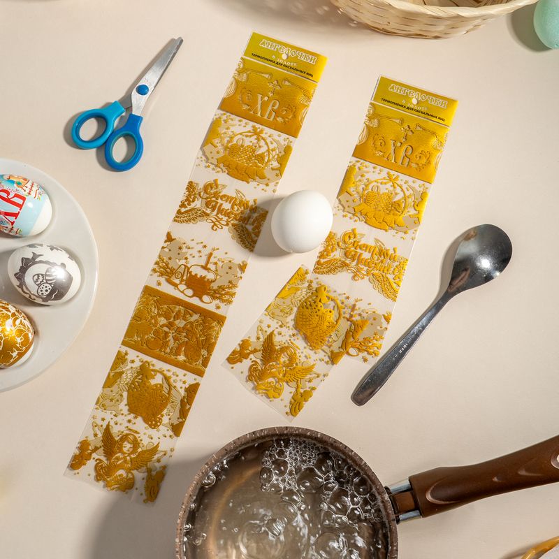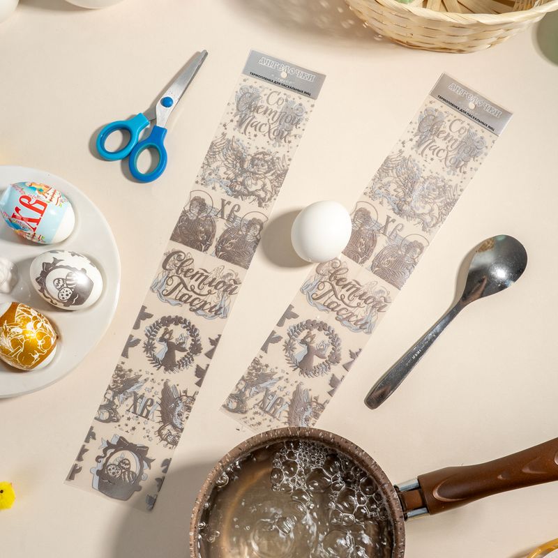 Термоплёнка для яиц с яркими картинками или узорами под роспись помогут легко и быстро украсить пасхальные яйца. Просто оберните яйцо и опустите в горячую воду. В одной упаковке 7 плёнок. Состав: полимерная плёнка. Товар представлен в ассортименте.