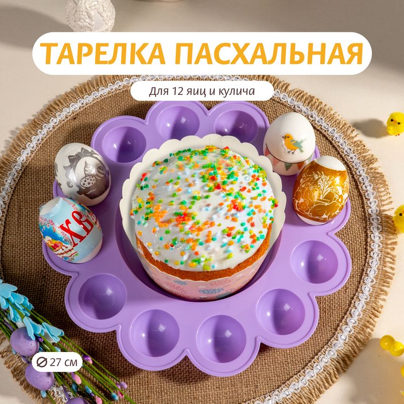 Тарелка пасхальная для 12 яиц и кулича, 27 см, в ассортименте